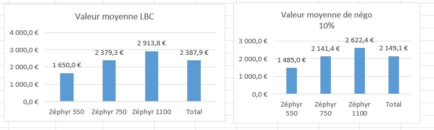 La nuit porte conseil et suivant ton commentaire précédent Brico, j’en ai facilement tiré la valeur moyenne de chaque modèle. Ainsi chacun pourra situer la valeur de sa belle  et son évolution ….. ( source LBC )