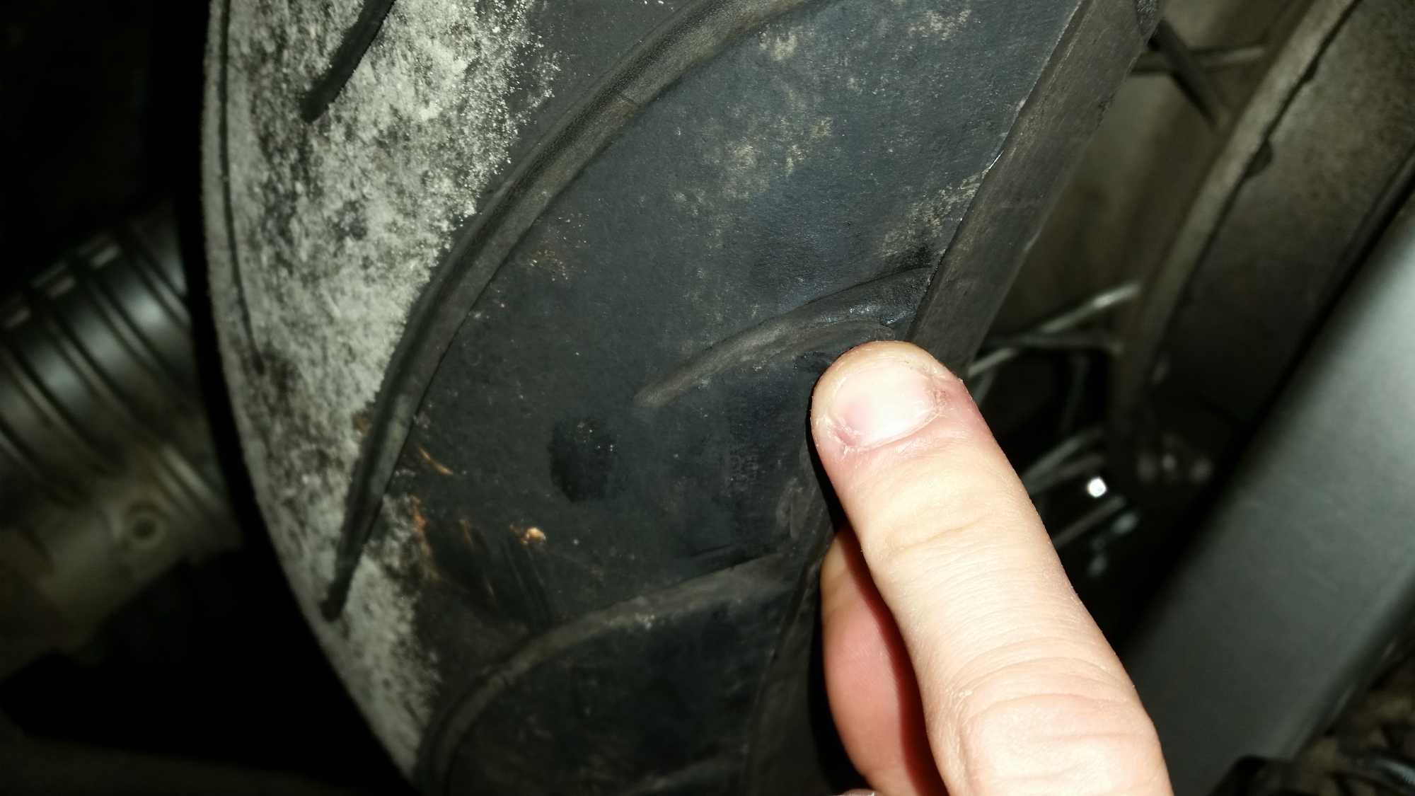 Je sais zkuba mais j’ai une chambre à air il me semble puisque que je roule en héritage et on m’a toujours dit que jante à rayon = incompatible pneu tubeless sinon risque d’éclatement. Enfin bref voici les photo (j’ai fait comme j’ai pu elle est rangée dans le fin fond du garage) Il y a plusieurs entaille sur la bande de roulement et celle ou ont voit mon doigt c’est une entaille a la limite du pneu je tire un peu sur la gomme coupé en fait En regardant sur le net j’ai constaté que pas mal de monde a déjà eu des entailles dans le pneu et que ce n’était pas forcement grave si on pas moi la structure de celui ci mais bon…