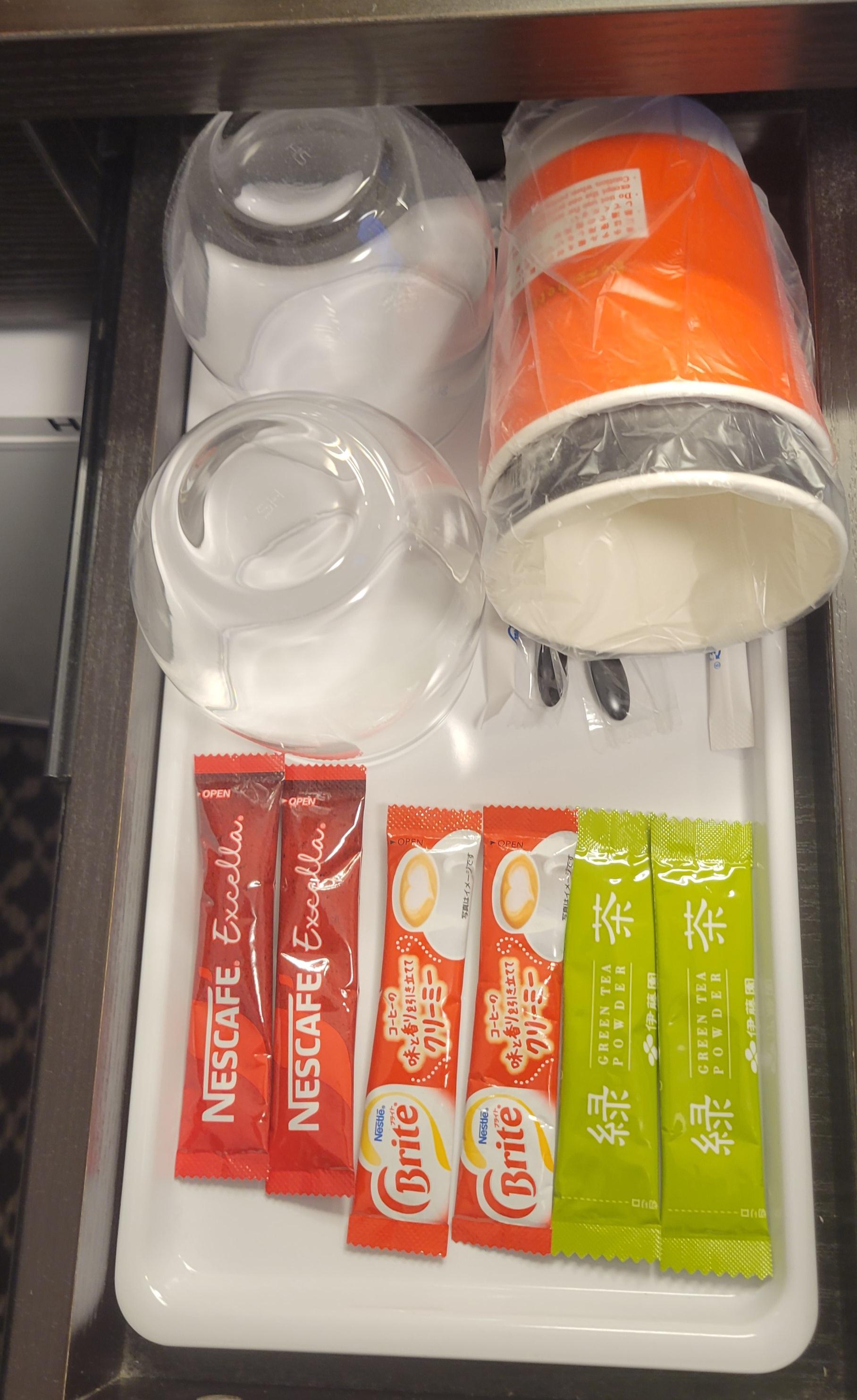 Dans ces hôtels pas de place perdue. Pour le petit déj. on te donne un bento et tu remontes le manger dans ta chambre.