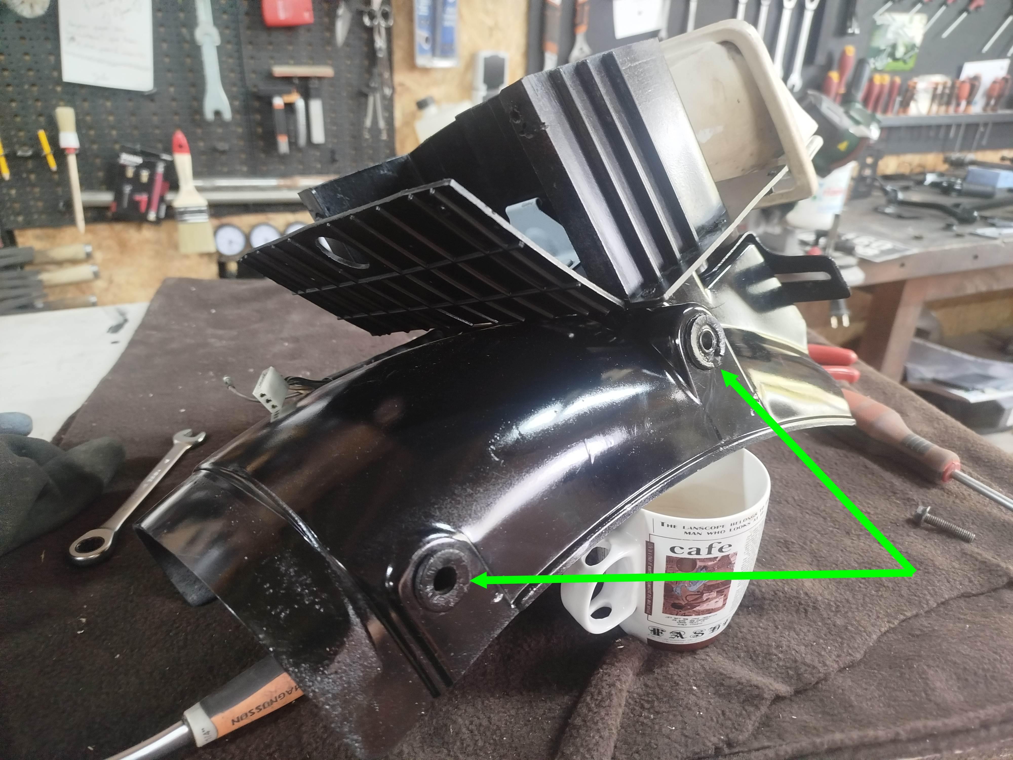 J’ai remonté le moteur et mis à sa place ! Je commence le remontage du puzzle en essayant de faire travailler les neurones de la mémoire pour mettre chaque chose à la bonne place…