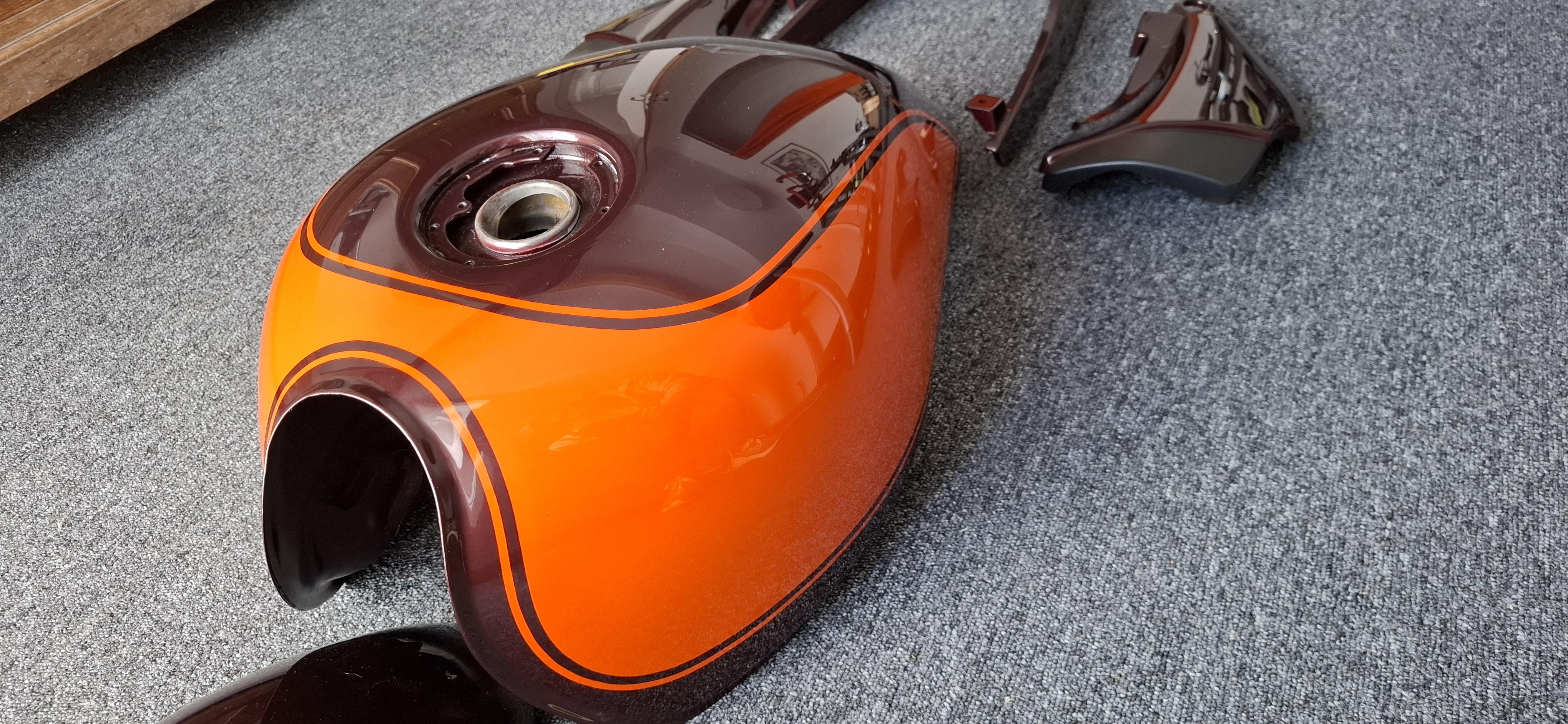Il a trouvé une peinture chez Triumph pour le orange : Triumph EE – Tangerine