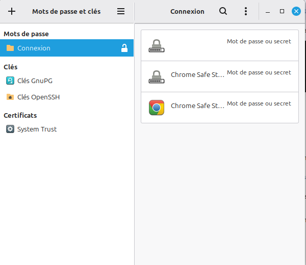 J’y entrave que dalle, mais ça devient rigoloEt j’ai toujours cet idiot de trousseau de connexion qu’il faut dévérouiller à chaque fois que j’accède à mon navigateur