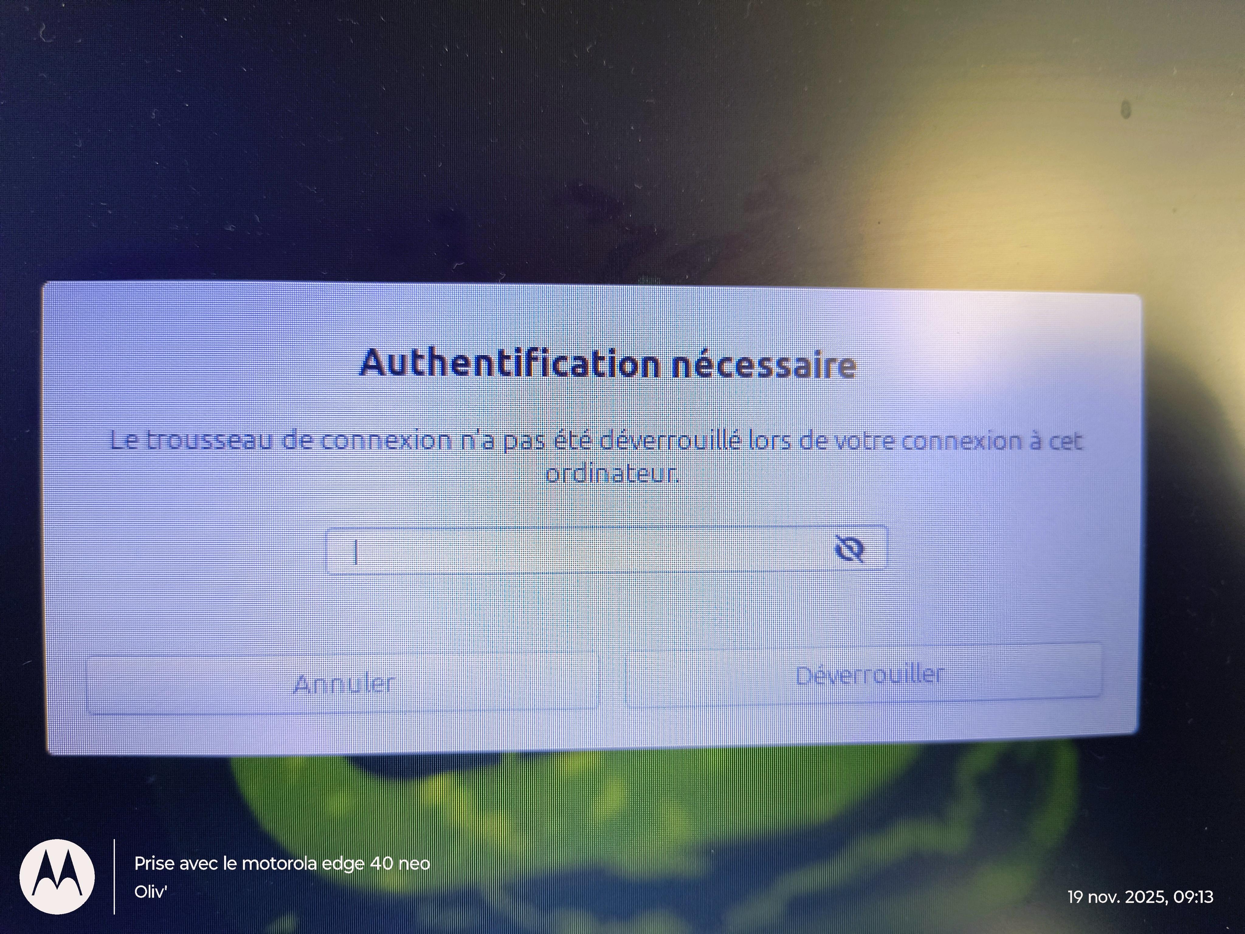 Autre chose : L’ordinateur s’allume sans mot de passe, mais on me demande systématiquement lorsque je veux accéder à un navigateur, d’entrer un mot de passe. La raison est la suivante : « le trousseau de connexion n’a pas été déverrouillé »