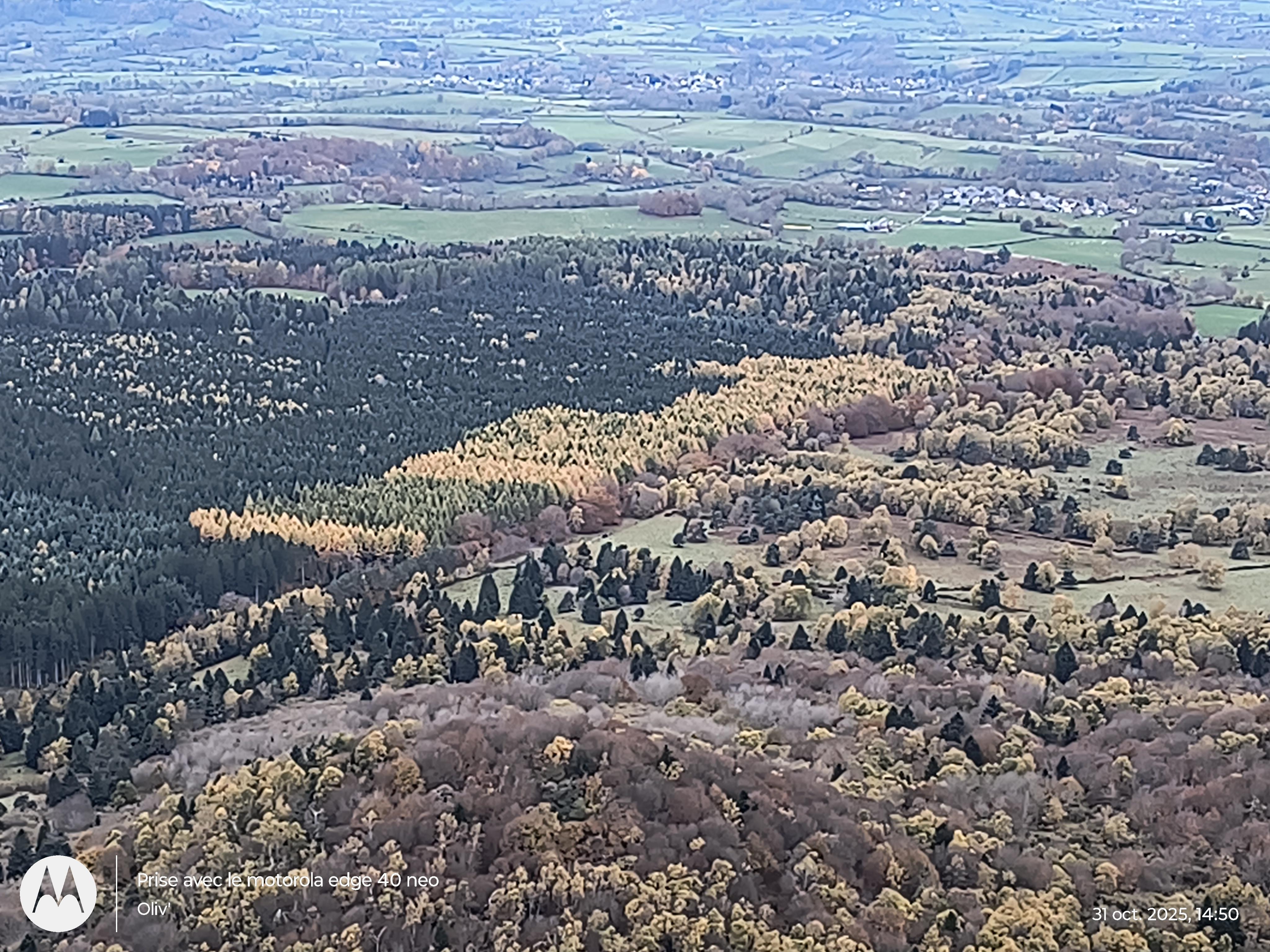 Hier, 20 mn de bécane tranquillou jusqu’au col de Ceyssat (1077m), en faisant gaffe à la route en sous-bois humide, puis montée de 40 mn par le chemin des muletiers jusqu’au déco ouest (1410 m), bien orienté dans du vent faible. S’en est suivi un petit vol de feignasse au dessus des couleurs mordorées des feuillus de l’automne, qui se marient aux conifères verdoyants. Huit minutes de glisse dans une masse d’air parfaitement stable avant de poser dans un pré, de replier le matos et de faire du stop pour reprendre la moto. J’ai juste eu le temps de traverser la route avant de monter dans la première bagnole qui passait.